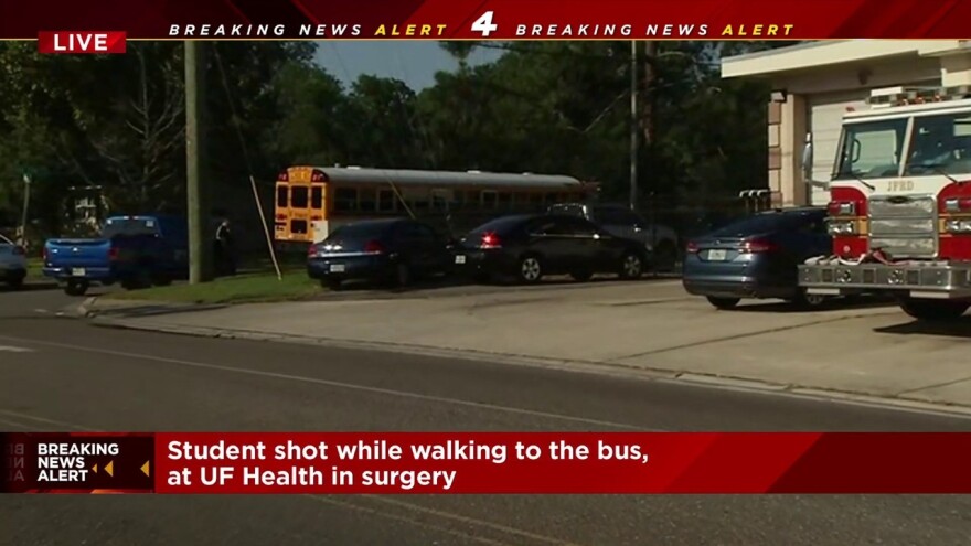 Our News4Jax partner reports Lt. Will Janes said a black vehicle approached the boy as he was walking on Lane Avenue toward his bus stop around 6:15 a.m. and someone inside opened fire. The student was hit one time, but was able to get to the bus stop and was loaded onto the bus, Janes said.