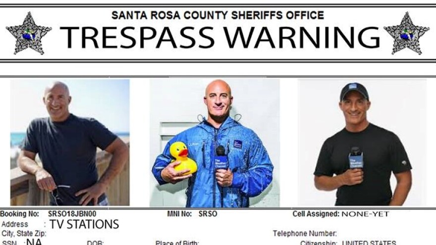 The department has posted a "trespass warning" against Weather Channel meteorologist Jim Cantore on Facebook, writing, "Everyone knows what's in store when Jim Contore shows up. So we issued a little notice. lol."