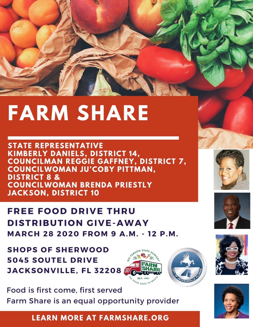 "During this urgent time of need, our partnership is essential to the community that we serve. Without the support of Farm Share, this event would not be possible. We appreciate the city of Jacksonville and Farm Share for standing in the gap, to ensure food and resources are available for families to receive the blessings of sharing," said Rep. Daniels.