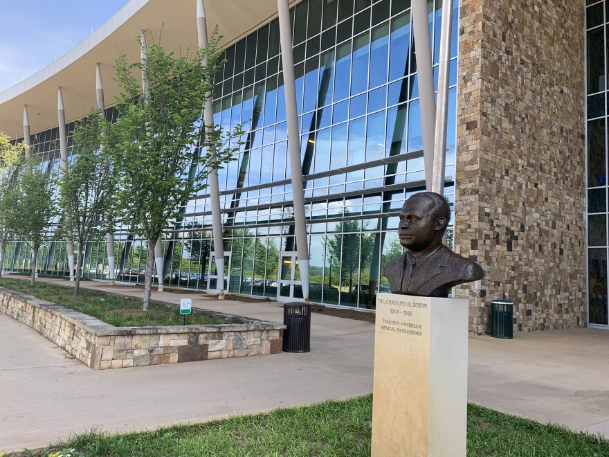 Charles Drew High School is a massive, glass and metal encased building, with fenced green lawns. It sits on the top of a hill overlooking a neighborhood Publix and neat rows of mixed-use apartment buildings and tidy, houses. Inside, David Edwards, the CEO of Purpose Built Communities, is giving a tour of a group of Tallahassee officials.