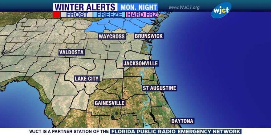 Frost is even possible Monday night in locations near the I-10 corridor and away from the beaches or urban areas.